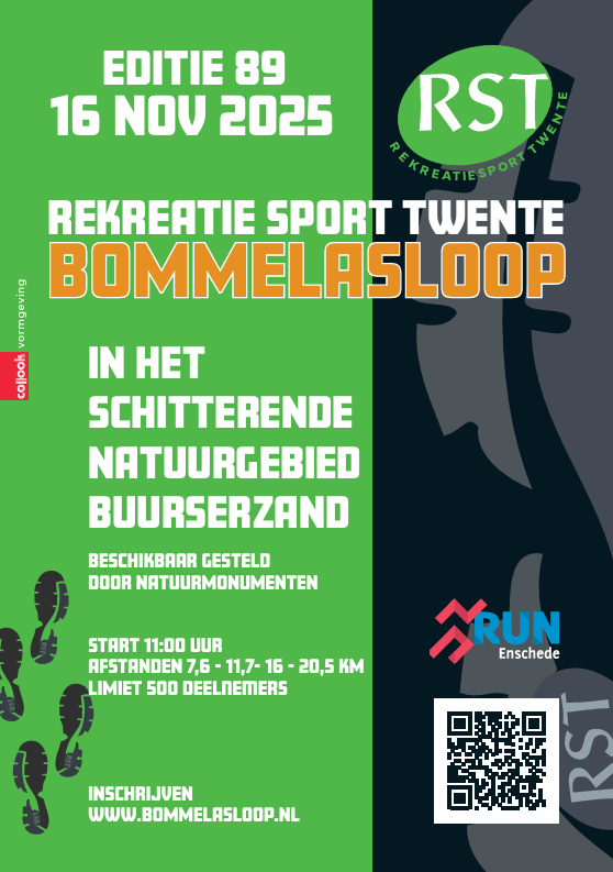 Op zondag 16 november 2025 organiseert Rekreatie Sport Twente de 89e editie van de Bommelasloop.